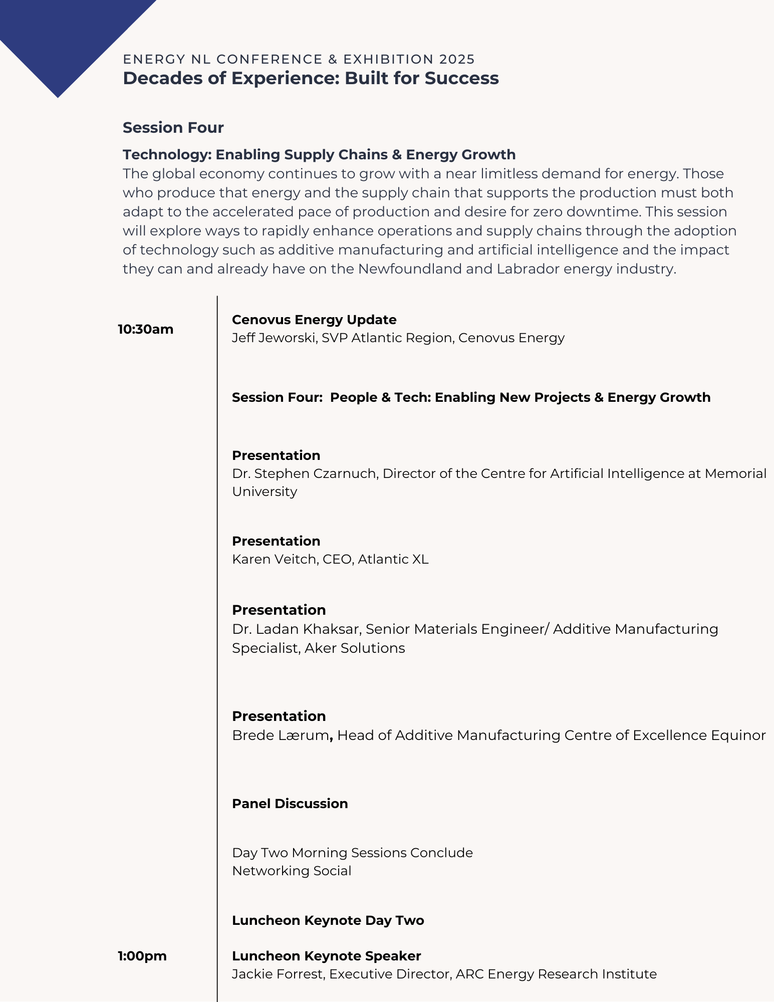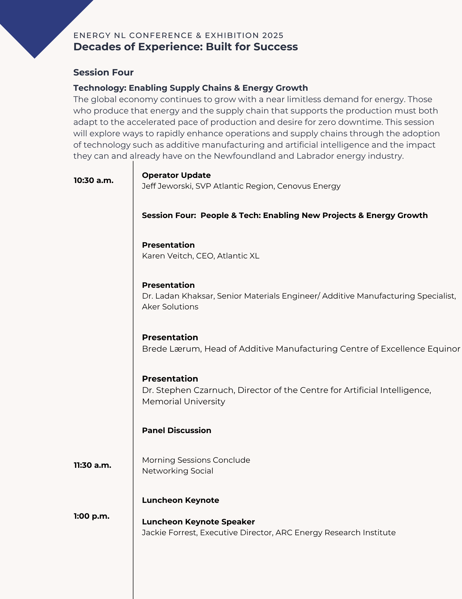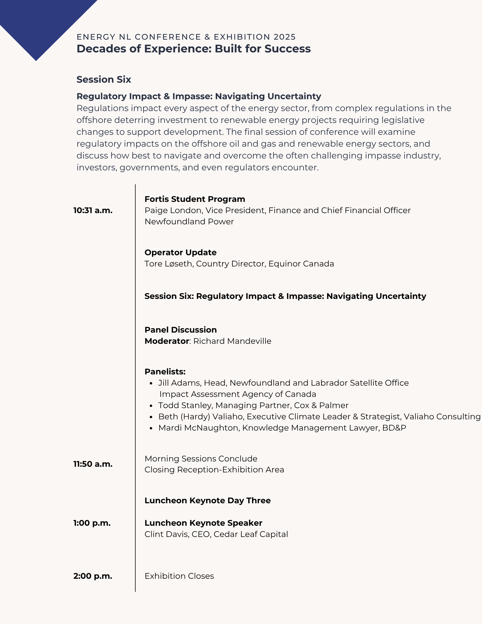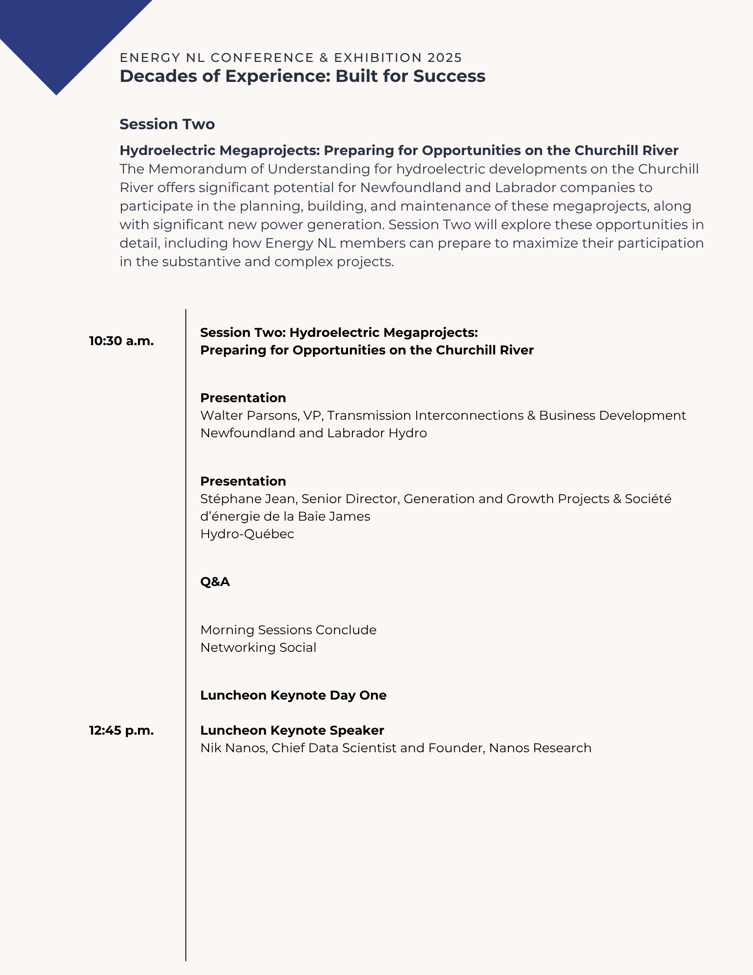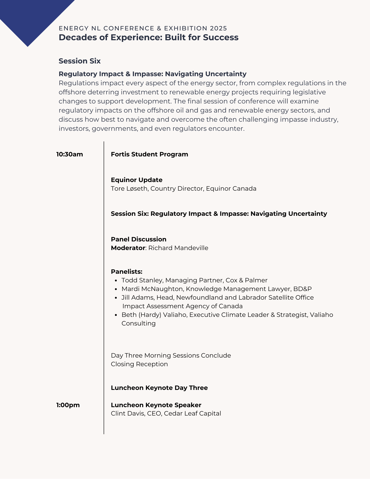 Let your network know that you will be participating in Energy NL's Conference & Exhibition 2025! Whether you are an attendee, speaker, or exhibitor, use the social media tools below to share information about Energy NL's Conference & Exhibition 2025 with your colleagues – let the industry know you are ready to connect in-person in St. Johns! Make sure you are following Energy NL on your favorite social platforms and tag us in your posts: Use the following hashtags in your posts so that the Network can find them and share: Download here Download here Download here Hotels & Rates Delta Hotels St. John's Conference Centre & Sheraton Hotel Newfoundland Monastery Hotel Leaside Manor Doubletree by Hilton St. John’s Harbourview Alt Hotel St. John's Share Your Participation